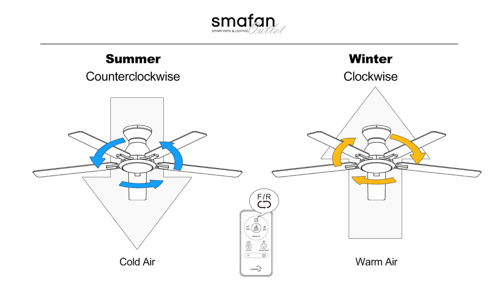 In colder months, adjusting the fan to rotate clockwise at a low speed helps improve indoor warmth. This setting gently pulls cool air upward and pushes the warm air trapped near the ceiling back down along the walls, allowing heat to spread more evenly across the room. As a result, the space can feel more comfortable and balanced, and your heating system may not need to work as hard to maintain the desired temperature.